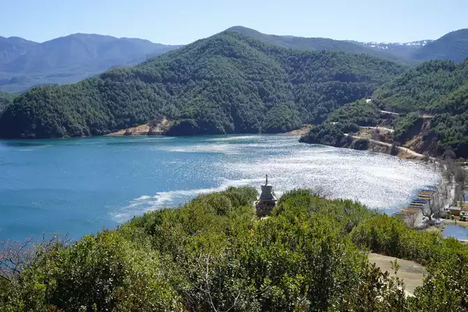First impression: the water is incredibly blue. The mountains and rivers remain beautiful, making it a true pearl of the plateau embedded in the Liangshan Mountains.