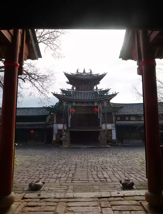 This building, built during the Jiaqing reign of the Qing Dynasty, is located on Sifang Street in the heart of the ancient town. The ground floor housed shops, the second floor housed a stage, and the third floor housed the Kuixing Pavilion (Wenquxing). The stage, visible from just outside the village, was once a landmark of the ancient town. The square served as the central market for caravan merchants and local residents, with Xingjiao Temple across the street. Day after day, performances were performed on the stage, offering a place for worshippers and the gods, and for the long-traveled caravans to enjoy tea, trade, rest, entertainment, and food.
