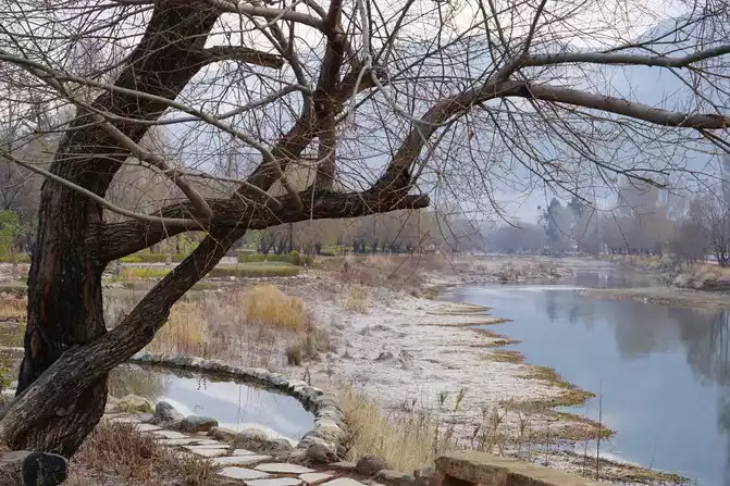 The ancient roads, stone bridges, old trees, grazing horses, and a slightly desolate environment are undoubtedly a painting of "Autumn Thoughts in the Pure Sands" by Ma Zhiyuan.