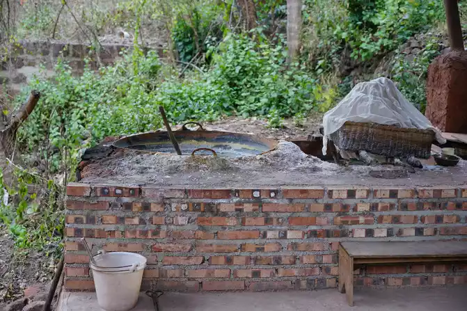 Boiling salt used to require cutting down trees for firewood, creating a smoky atmosphere. Production ceased over twenty years ago. Now, only a single well and stove at the village entrance provide demonstration production, satisfying local salting needs and selling to shops. In fact, villagers often buy iodized salt from outside.