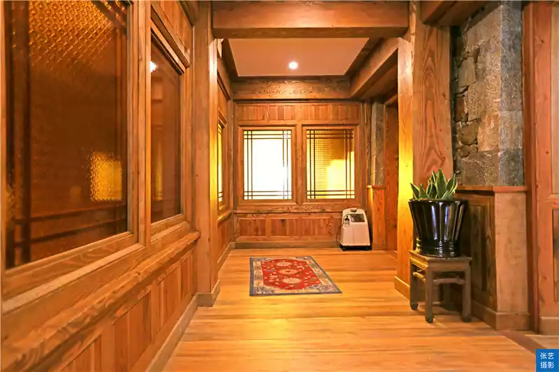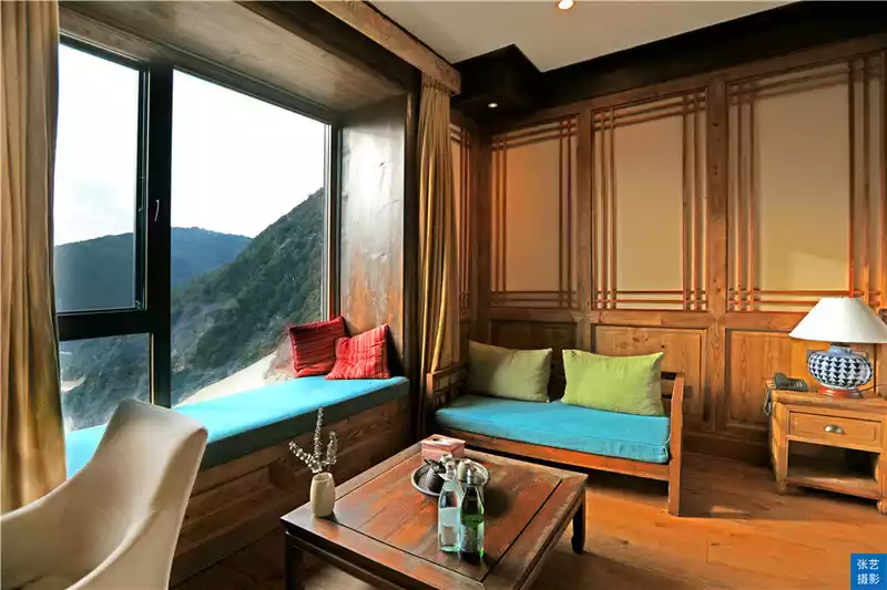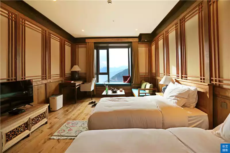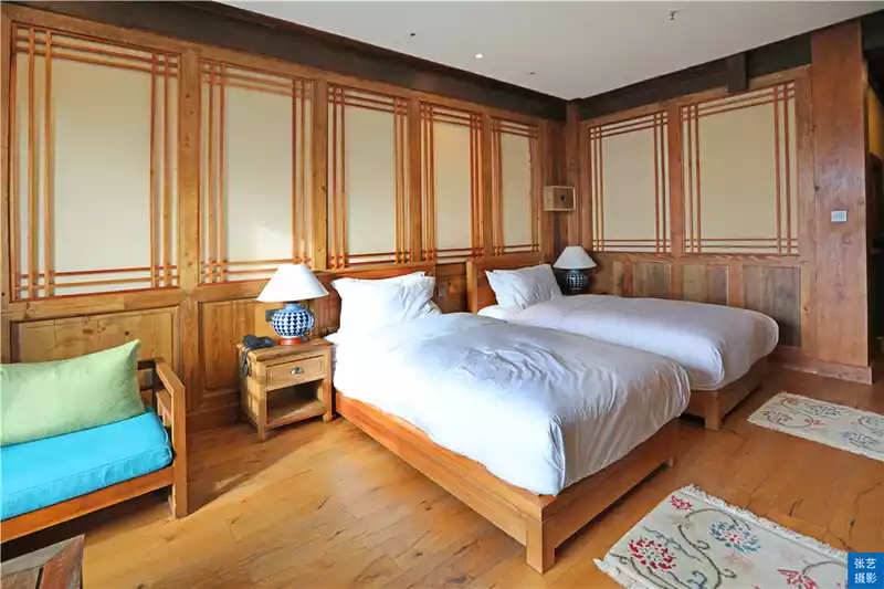 Songtsam Meili Mountain Residence is nestled against the mountainside. Its stone-built Tibetan-style watchtowers are a local architectural feature, hand-built using the most primitive stones. Half nestled against the mountainside, they create a harmonious and natural atmosphere. The interior is decorated entirely in logs, and most of the building and decorative materials are sourced from nature.