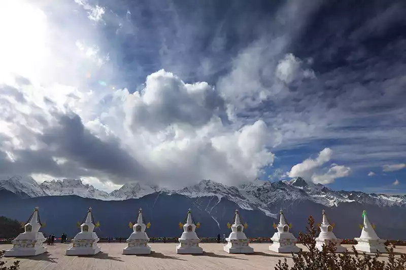 To provide guests with a perfect view of the snow-capped mountains opposite, the hotel has also built a viewing terrace, overlooking the mysterious and beautiful Meili Snow Mountain in the distance.