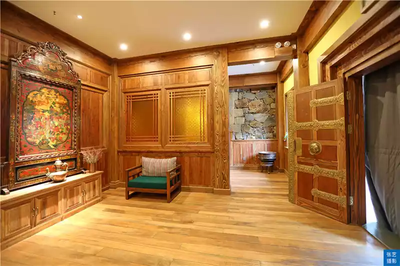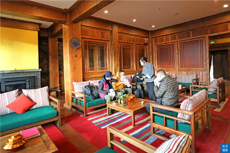 Upon entering the hotel, you're greeted by vibrant colors and the vibrant Tibetan atmosphere. Traditional Tibetan interior design, bronze Buddha statues, thangkas, lacquerware... it resembles a Tibetan art museum.