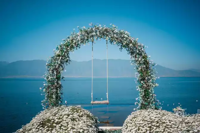 The prime geographical location and high-altitude B&B complex make this place a popular check-in spot for wedding dresses. The sparkling lake and the pure white walls decorated in an Instagram-style style make any photo here a blockbuster. There are not many rooms and it is easy to be fully booked. If you like it, you must book it in advance. Your significant other will definitely like such an exclusive place. The beautiful internet celebrity vacation style and the casual INS style photos will easily win the hearts of girls. The hotel offers one-on-one butler service. Breakfast can be delivered to your room or enjoyed in the rooftop restaurant, with the beautiful Cangshan Mountain and Erhai Lake in front of you. For dinner, you can choose between Japanese food on the first floor or the sky bar on the top floor. You can also choose between Chinese and Western hot pot.