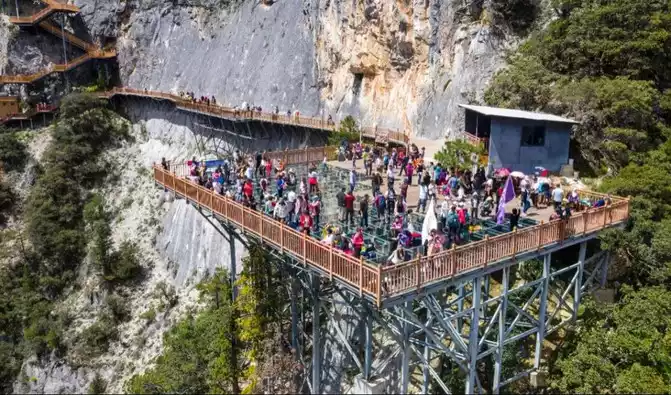 The plank road is 1.5 kilometers long and is surrounded by towering mountains. There is really a loud echo! You can also experience the high-altitude cable car here, which is very exciting!