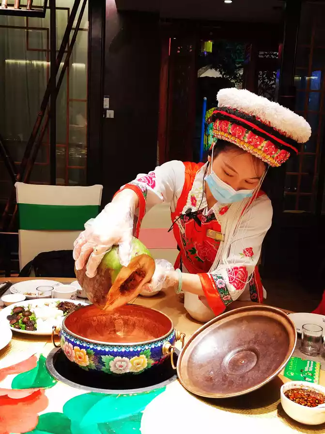 Niu Ganba is a very special kind of fire-roasted beef. The chefs of Dali Bai Village use the best quality beef and add unique spices to the charcoal grill. It is fragrant and delicious, but unfortunately it consumes a lot of alcohol.