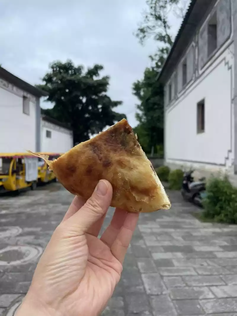 When you arrive in Xizhou Ancient Town, you absolutely must try the Xizhou baba. They come in a variety of flavors, and my favorite is the rose honey-filled baba, which is incredibly delicious and sweet. However, I wouldn't recommend buying too much. The three of us only bought two, both in different flavors, because you can get sick of this kind of thing if you eat too much.
