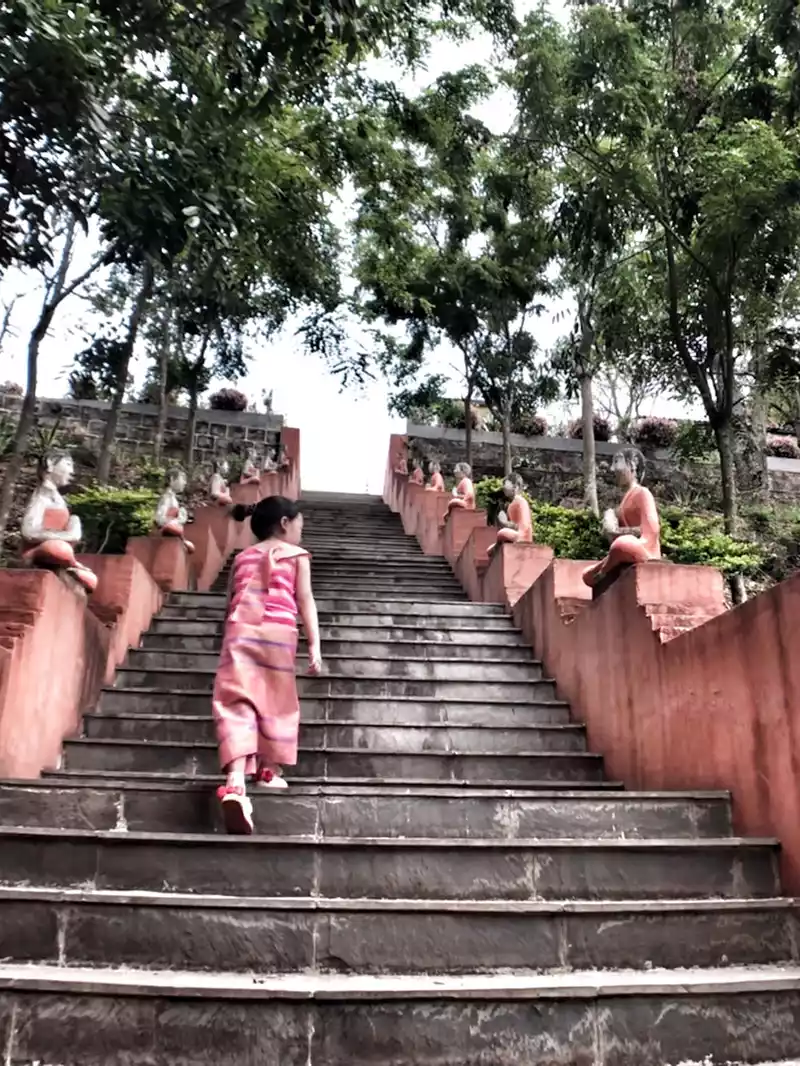 Following the mountain path, we first arrived at Gantong Temple. Built in the Tang Dynasty, this temple, also known as Dangshan Temple, has experienced several ups and downs. Once home to renowned scholars and monks, it held a rich history. However, time has passed, and today, I only remember the temple's vibrant flowers; so much else has become a passing joke. Next, we arrived at Jizhao Temple, a tranquil nunnery nestled mid-mountain. Originally a place for quiet meditation, it has become a popular online destination thanks to its abundance of succulents and flowers. Alas, in modern society, quiet places are hard to find. Jizhao Temple seemed to accept this with equanimity, seizing the opportunity to offer its own vegetarian meals, promoting the concept of vegetarianism as a spiritual practice and catering to the influx of tourists and pilgrims. I truly admire Jizhao Temple's approach: everything is predestined, so we should act according to circumstances, rather than impose constraints. There are no restaurants on the mountain, so the vegetarian meals at Jizhao Temple provided the perfect boost for our climb and a chance to learn about the importance of thriftiness. However, the sheer number of people lining up for the vegetarian meals surprised me. After bidding farewell to Jizhao Temple, we took the cable car from Gantong Temple up to Qingbi Gorge to explore the mystical beauty of the Cangshan Grand Canyon. Qingbi Creek, one of the Eighteen Creeks of Cangshan, flows gently, shaded by trees, offering a refreshing coolness amidst the scorching summer heat. The Zhenlong chess game by the creek is said to be the chess game set up by Wuyazi in "The Demi-Gods and Semi-Devils," a chessboard that remained unsolved for thirty years until it was accidentally cracked by Xuzhu. From Qingbi Gorge, continue along the Jade Belt Cloud Road, weaving through forests, secluded valleys, wading through clear streams, and gazing out at Erhai Lake. Enjoy the cool breeze and breathtaking views along the way, a relaxing and refreshing experience. After 4.5 kilometers, you'll reach the Seven Dragon Maiden Pool. From there, take the Ximatan Cableway down to the Tianlongbabu Film and Television Studio. If you have the time and stamina, you can continue the 10-plus kilometers to the Zhonghe Cableway. However, after reaching the summit of the Seven Dragon Maiden Pool, we were exhausted, so we descended directly to the film and television studio at the foot of the mountain. The panoramic views of Cangshan Mountain and Erhai Lake from the cableway are truly a delight. The Jade Belt Cloud Road, stretching 18 kilometers, winds like a flowing ribbon between the 19 peaks of Cangshan Mountain. It's the perfect way to explore the mountains and enjoy the scenery. Its name derives from the famous Jade Belt Clouds. At the Tianlongbabu Film and Television Studio, you can visit the Western Xia Imperial Palace, wander around the Song Dynasty City, and even dress up as a fairy or a hero, taking beautiful photos as souvenirs.