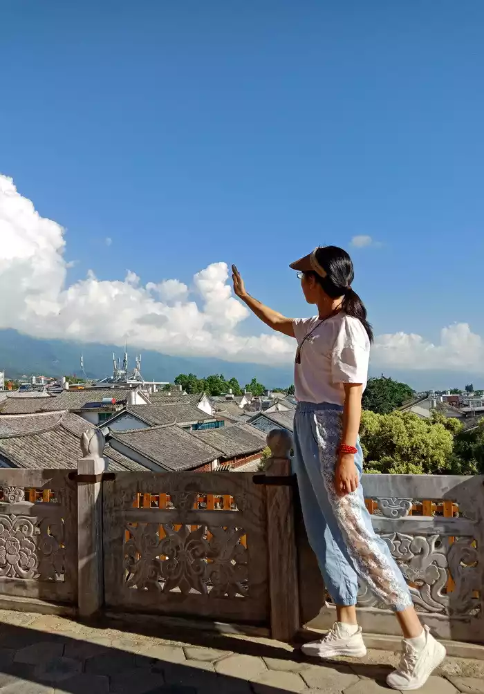 The next morning, we ascended the city wall, overlooking the ancient city and gazing out over Erhai Lake. White clouds drifted across the sky, and the distant Cangshan Mountain was a shimmering dark green. This kind of beauty can only be appreciated and felt in Dali. At that moment, we were truly captivated! Perhaps Dali is that kind of place, a place that resonates with us, captivating us again and again. No matter how many times you visit, you'll always discover its unique beauty and fall in love with it at first sight.
