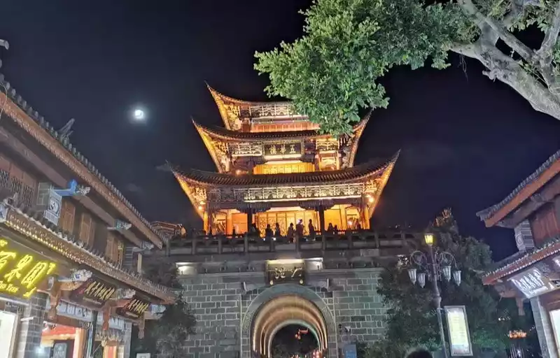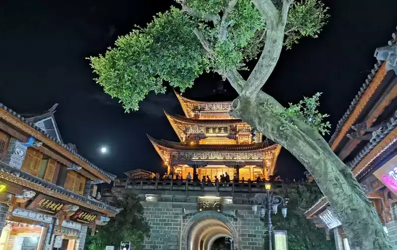Revisiting the ancient city of Dali, the city gates are majestic, and the flowers and trees are shaded. The ancient city is crowded with tourists, and it is still prosperous. The Wuhua Tower is still beautiful and magnificent. That night, a super large moon, which only appears once in many years, appeared in the night sky. We were fortunate to see the beautiful picture of the bright moon shining on the ancient city. The scenery is gorgeous and unforgettable.