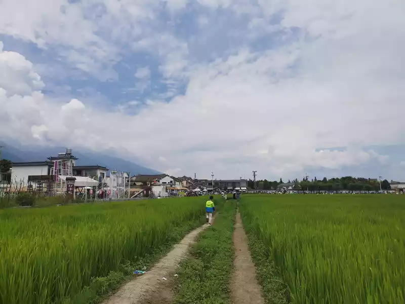 The internet-famous S Bay is beautiful, but it's also crowded. Taking photos requires angles and technique. I was very dissatisfied with my son's style of taking photos that only people in the picture could be seen. Finally, Mr. Liao got so angry that he dragged a photographer to me on the spot and told me to find a professional photographer. We were almost on time to get to Xizhou Ancient Town, so I had to give up on the professional photographer. After buying a ticket to Xizhou Ancient Town, I took a tour bus and visited the old house of the local tycoon with a guide. We also had some popular snacks in town, including Xizhou baba, bean flour, shrimp cakes, and flower popsicles. The ancient town isn't actually that big, and we didn't stay long despite the scheduled meeting time. The wind-blown wheat fields didn't quite live up to the hype, so we took a quick look and left. This was the only small attraction with a guided tour, and our child complained about not wanting to follow the guide, feeling uncomfortable listening to the commentary through headphones.