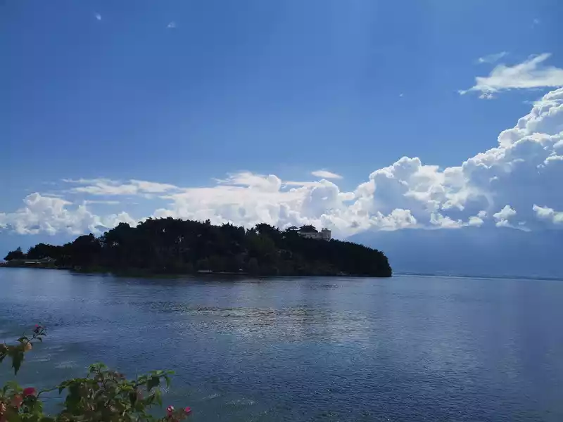 We had planned to buy a ferry ticket to Jinsuo Island from Shuanglang Ancient Town, but the 24-hour nucleic acid test was required, so we had to give up. A sunshower hit around 3:00 PM, so we simply ordered afternoon tea and enjoyed the view while we waited for our child's father to attend to some business.