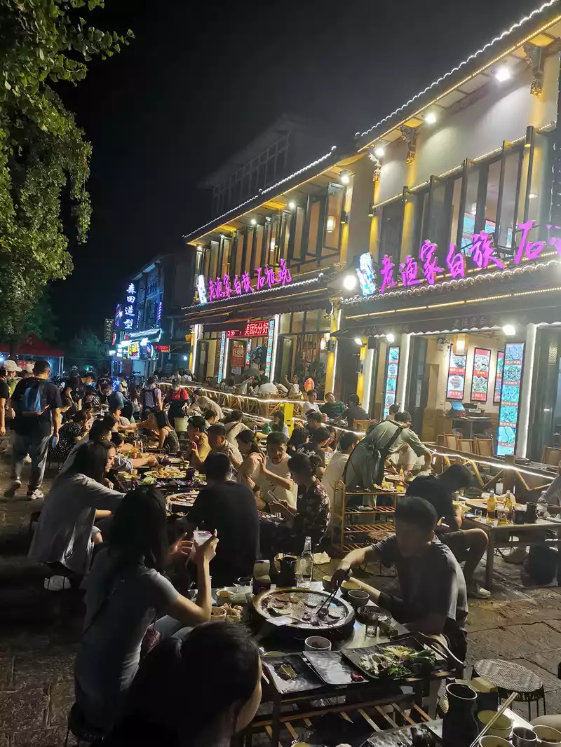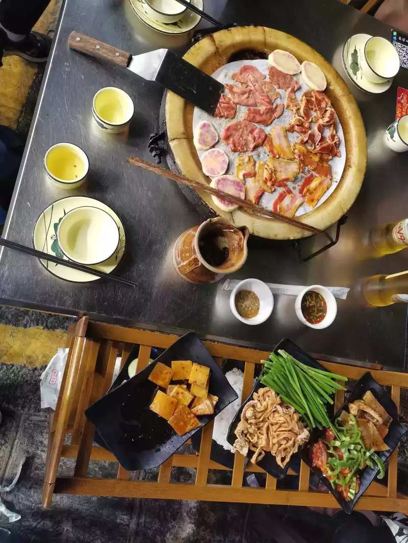August 13th, all the way by high-speed rail! Shenzhen North - Kunming South - Dali High-Speed Railway Station. We left at 7:00 AM and arrived at Dali Station at 7:00 PM. It was a long day's journey, but thankfully I'd packed two Three Kingdoms comic books and two Xia Mas magazines for the kids. We cooked instant noodles, ate snacks, and read, each keeping himself company. Arriving in Dali, the sky was still clear and bright, relieving any worries about the rainy season. We found a guesthouse near the ancient city of Dali, with a small courtyard of flowers, two cats, and a small dog. The owner was very warm and attentive. The courtyard wasn't large, but at the foot of Cangshan Mountain, the terrace offered a perfect spot for lounging in a rocking chair, watching the stars in the breeze, and hanging out to dry clothes. Unwilling to relocate with our luggage, we booked a three-night stay. After settling our luggage, we headed to the owner's recommendation: Lao Yu Jia Baizu Slate BBQ, a popular and delicious place. Dali Bai Autonomous Prefecture