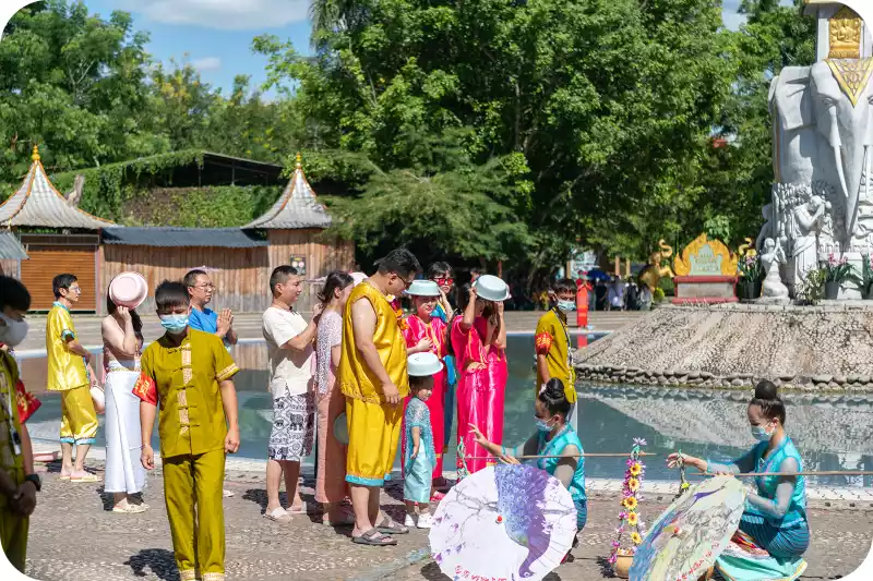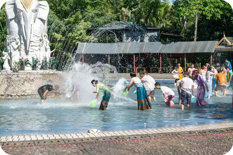 After the thrill of speed and passion, you'll receive a commemorative badge, the perfect testament to your experience of a real-life Operation Mekong. After the speed and passion of the speedboat version, the next activity to experience is the most distinctive water splashing carnival in Dai culture: