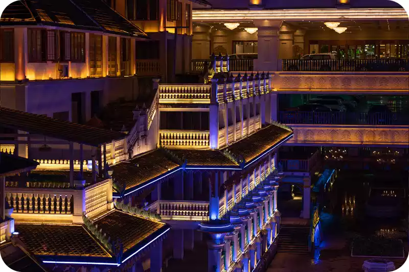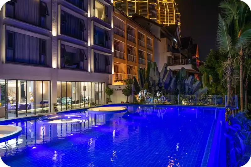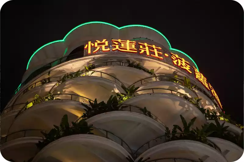 When the lights are bright at night, the night view of the hotel is also very beautiful.
