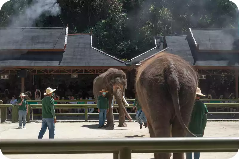 Although it is almost impossible to encounter real wild elephants in this season, you can still have a close contact with the elephants in the park when you come to the Wild Elephant Valley, so the first stop in the Wild Elephant Valley is the Elephant School.