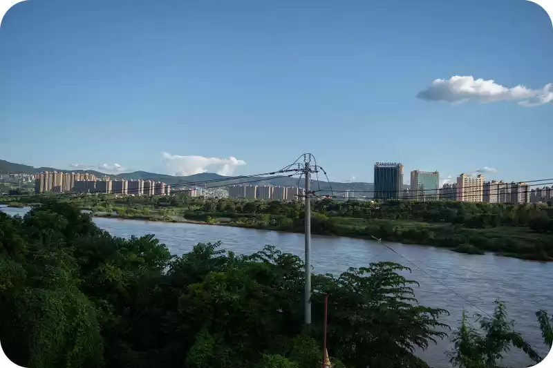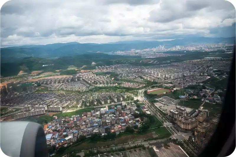 After a layover, the plane has arrived over Jinghong City and is about to land.
