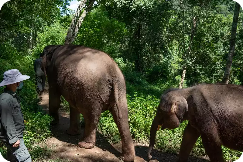 There were two elephants, one large and one small, led by the scenic area staff, and we followed them on a different journey: