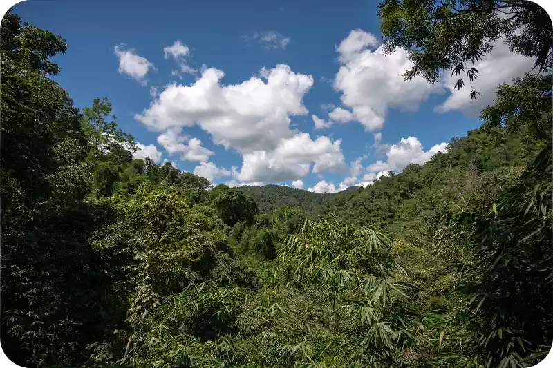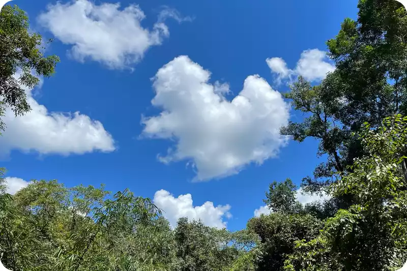 At noon, the blue sky and white clouds returned, and the feeling of the tropical rainforest became more intense.