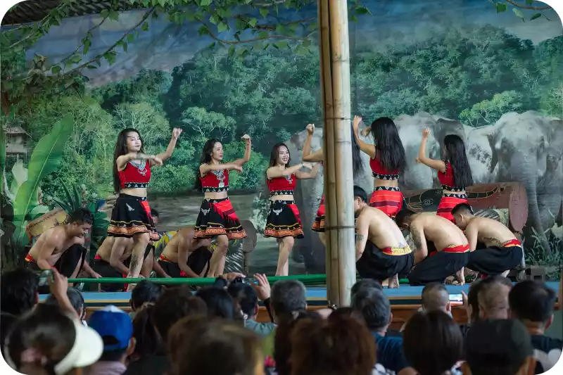 The last stop in the Wild Elephant Valley is to watch the performance of the Wa compatriots in this small rainforest theater.