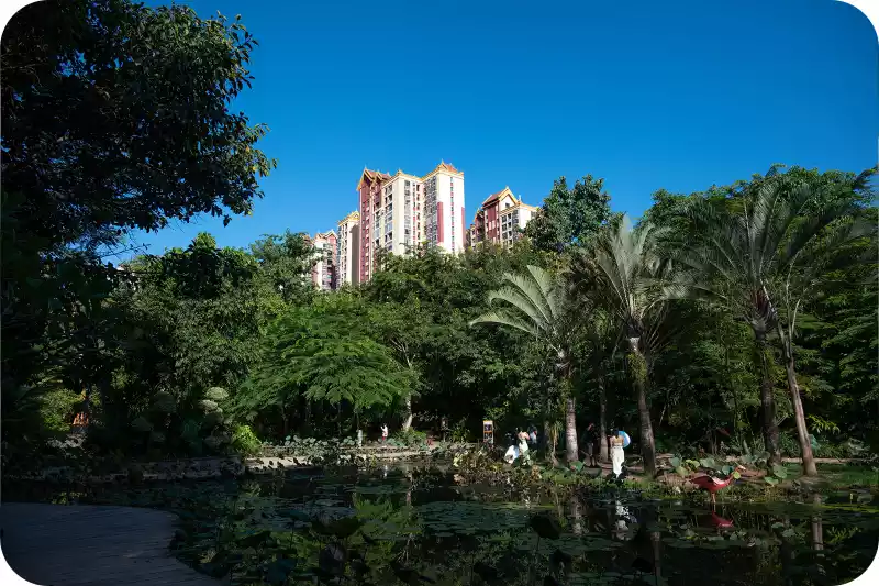 As the former royal garden of the Dai king, Manting Park is similar in style to the Dai Garden, but it has more tropical rainforest elements.