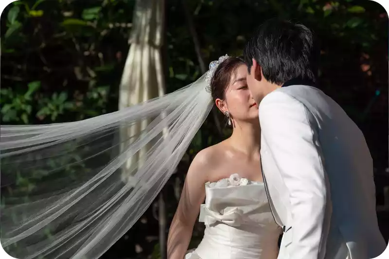 Passing a wedding photo shoot of a newlywed couple, I also used my camera to record their beautiful and happy moments.