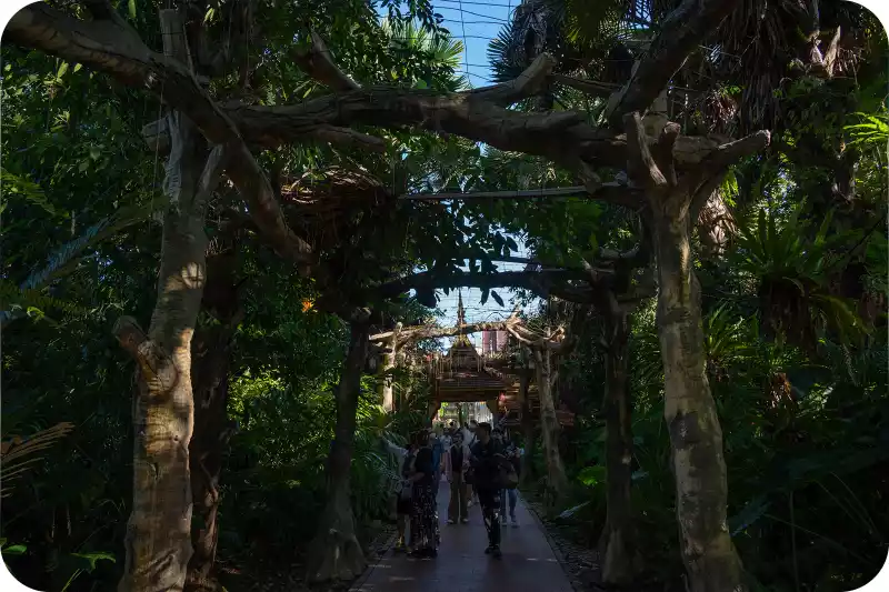The day before, I had high expectations at the Chinese Academy of Sciences Botanical Garden, and the gloomy weather had made the experience rather underwhelming. So, on the sunny third day, Wild Elephant Valley, also with its tropical rainforest scenery, seemed like a good choice to make up for the previous day's disappointment. The water lilies in the Wild Elephant Valley were also in full bloom. I also ran into some of my group members from the botanical garden the day before at the Wild Elephant Valley. It was a perfect coincidence.