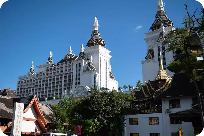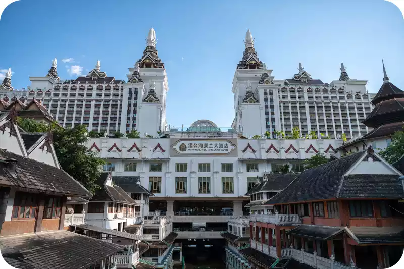 Go back to Gaozhuang Xishuangjing and come to the Mekong Jinglan Hotel, which is also another landmark building in the scenic area.