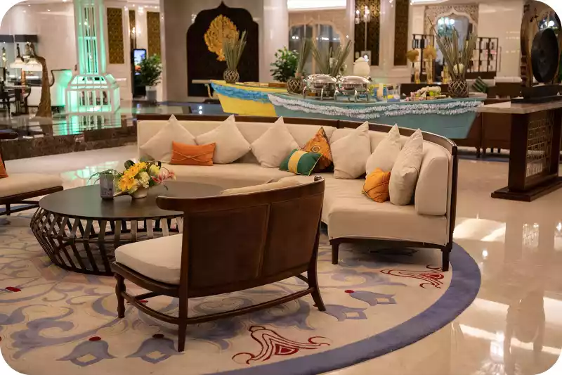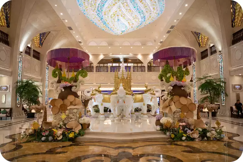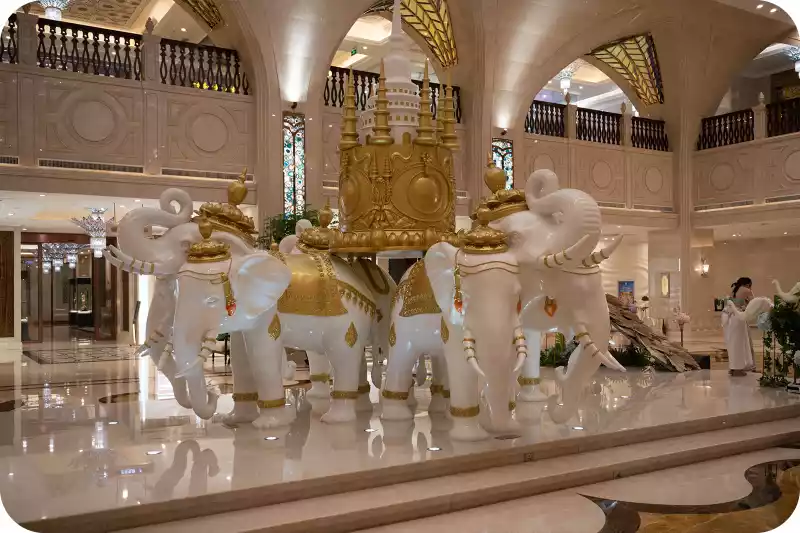 Walking into the hotel, the lobby is spacious and bright, and the elephant sculpture in the middle is full of Dai elements.