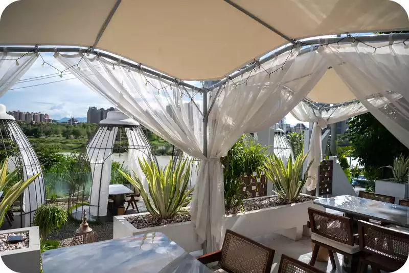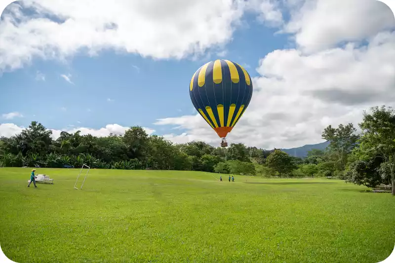 The sky gradually opens up, and you can also experience the fun of riding a hot air balloon on the lawn inside the botanical garden.