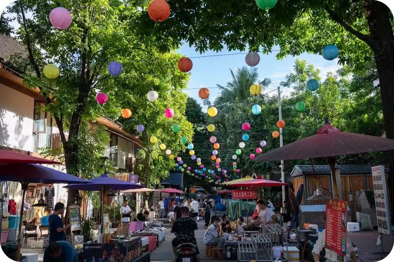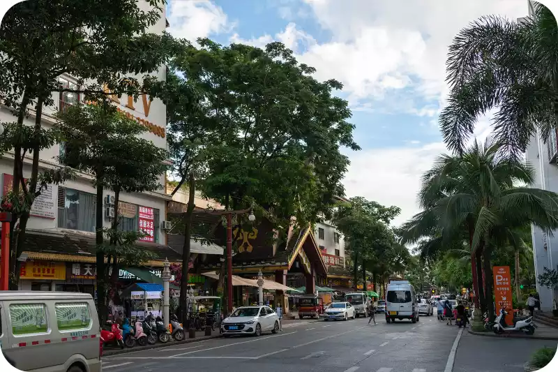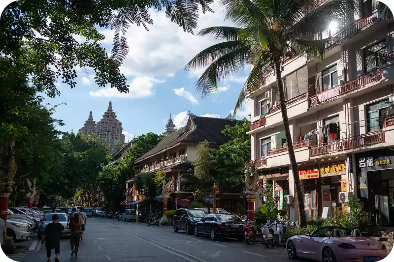 Walk out of the hotel and stroll through Gaozhuang Xishuangjing. If it weren't for the Chinese signs on the street, this place would be Thailand, full of Southeast Asian style.