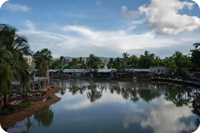 A quiet riverside spot in the afternoon has now transformed into a popular gathering place.