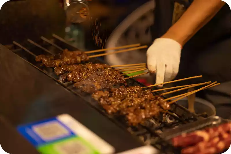 If you are tired of walking or have a craving for food, the roadside skewers are a very good choice.