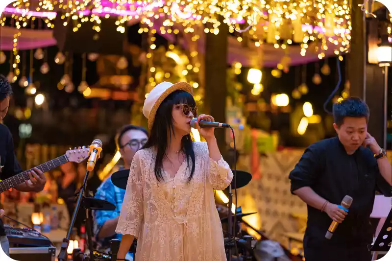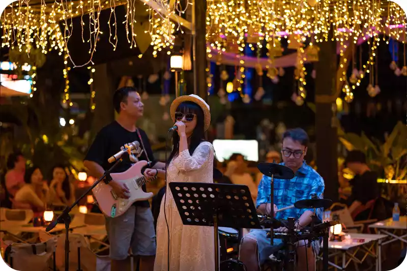 A moving singing voice came from the front, attracting everyone and stopping to appreciate the live performance of this bar lady.