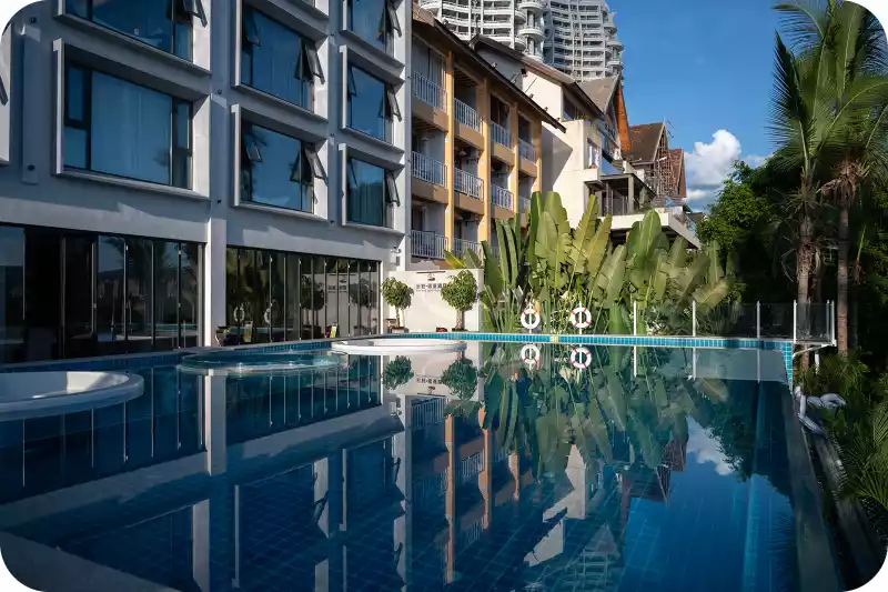 The hotel staff escorted me to the door of my room. After opening the door, I fell in love with the light luxury decoration style and spacious space in an instant. The biggest highlight of the hotel is the infinity pool on the first floor, which is also a very photogenic place.