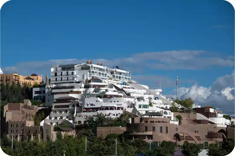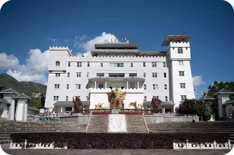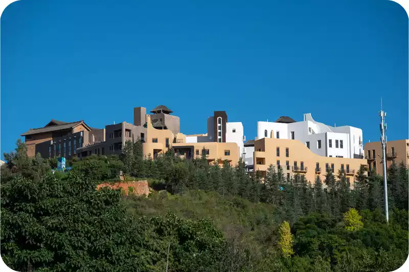 Last year, we started from the ancient city of Dali and transferred to another bus through downtown Dali and arrived directly at the entrance of Ideal State. We did not see the whole of Ideal State on the way; but now I started from the double corridor on the north and walked south. When I almost arrived at Ideal State, the panoramic view of the future city in front of me really amazed me!
