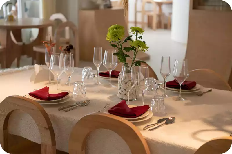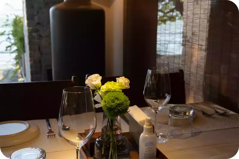 A high-quality dinner is served, and the elegant knife and fork moment begins.