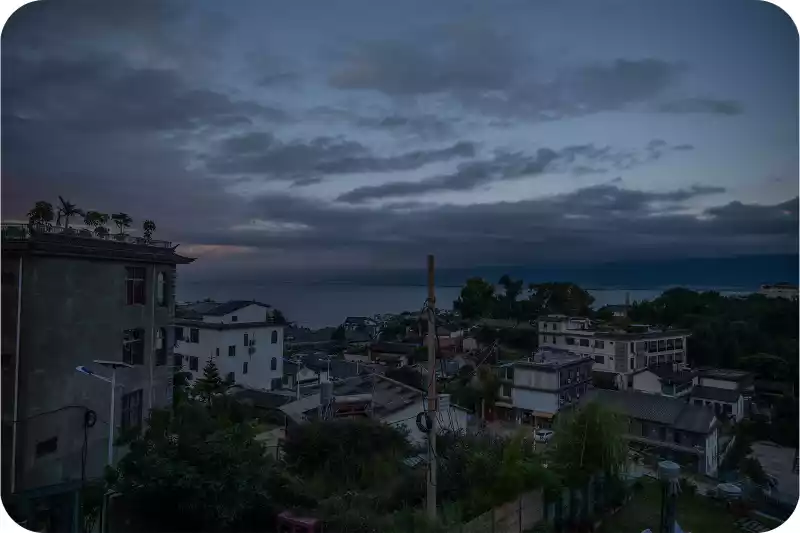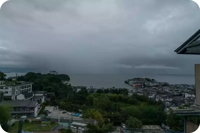 Early in the morning, it was raining lightly outside, and the rain clouds above Erhai Lake were moving at a speed visible to the naked eye.