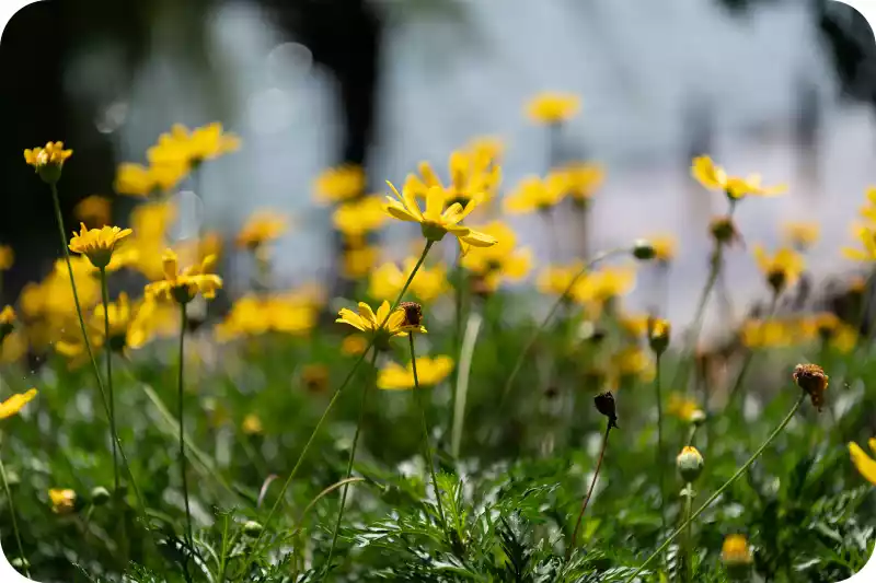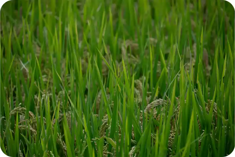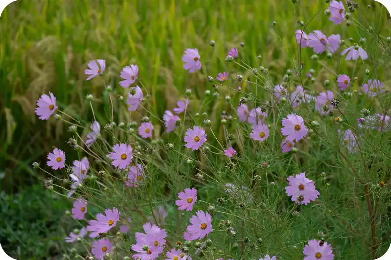 In the rice fields, wheat ears and wild flowers compete with each other, creating a scene full of spring.