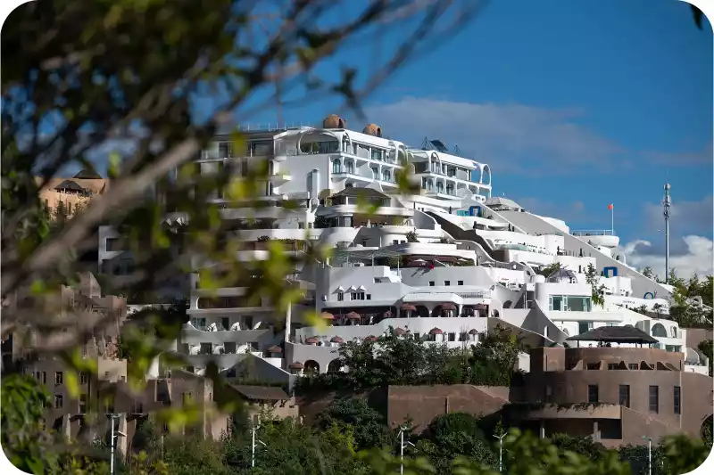 At present, Ideal State is roughly divided into two parts from the appearance. The white part in the front is the hotel and commercial area, while the light brown part in the rear is the residential area.
