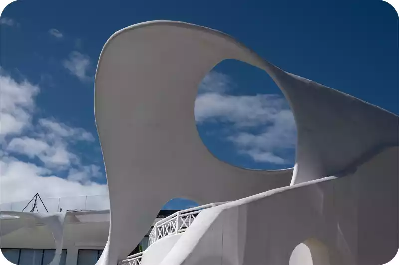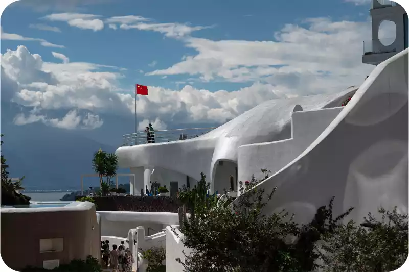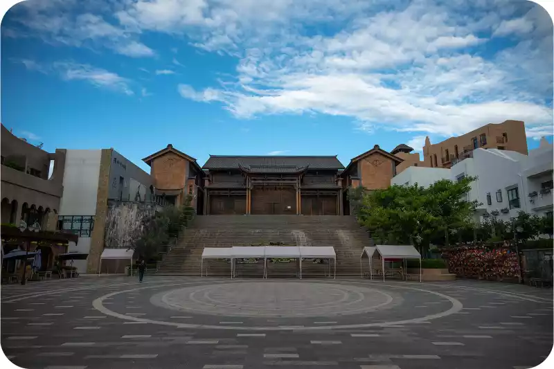The intangible cultural heritage museum in front is also the only purely Chinese-style building in Ideal State.