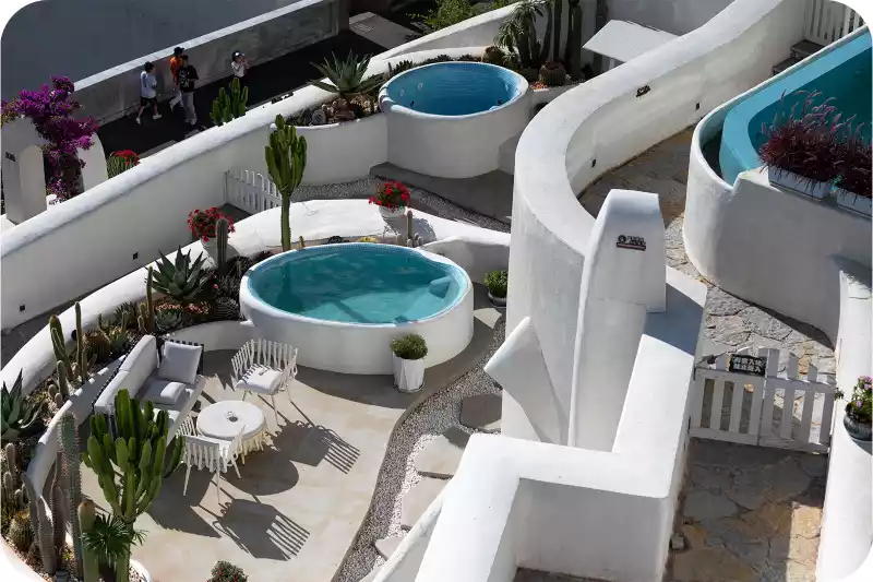 The inn has a small courtyard with a swimming pool, and the environment is great.