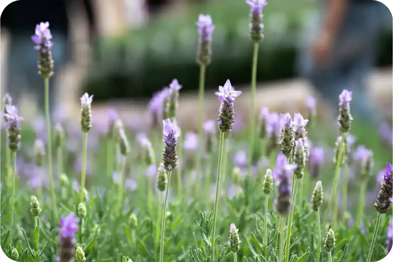 The flower beds on the Flower Avenue are filled with purple lavender.