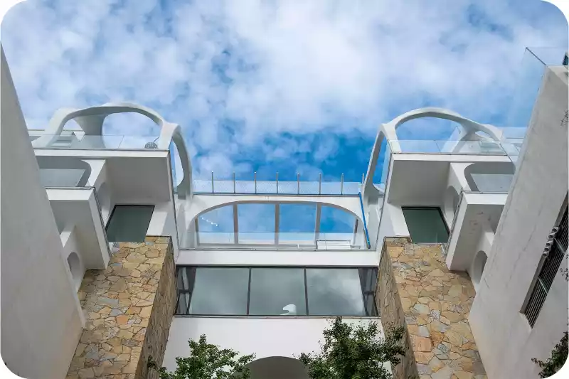 The exterior walls of the podium below Ideal State were previously painted brown, making them appear more low-key and reserved compared to pure white.