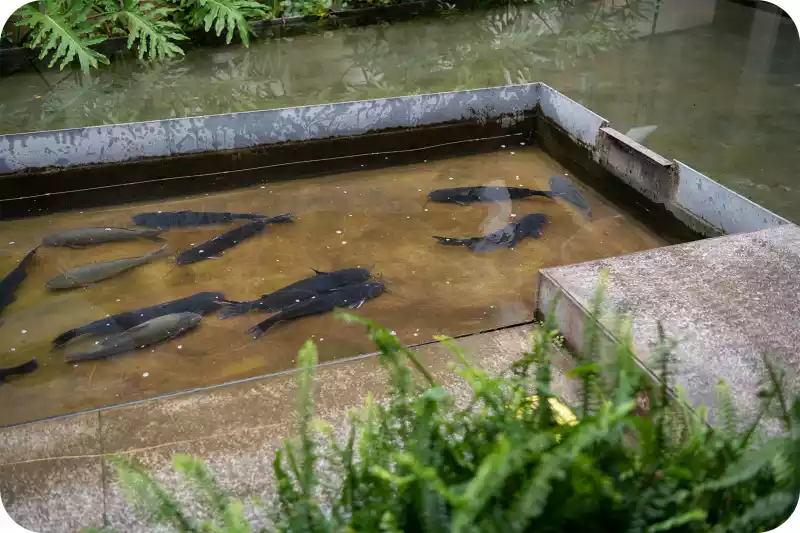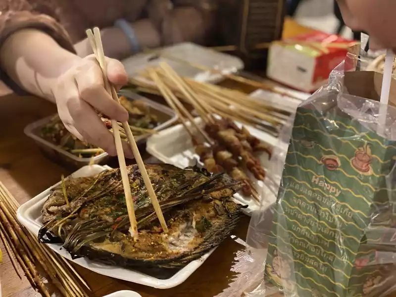 The fish here are all picked fresh in the pond. The little brother who caught the fish gave me a smaller one because he was afraid that I would not be able to eat it.