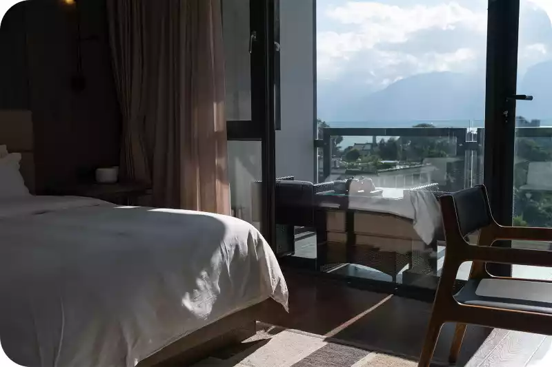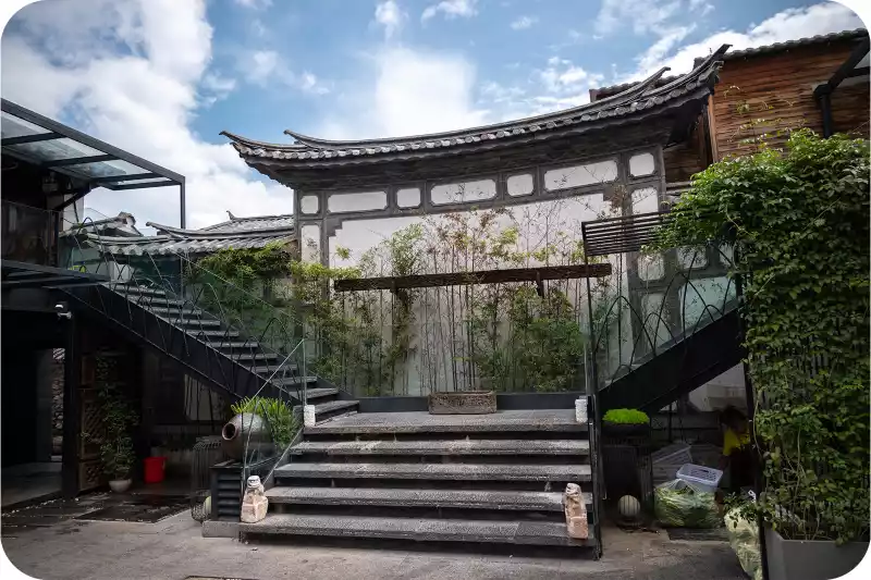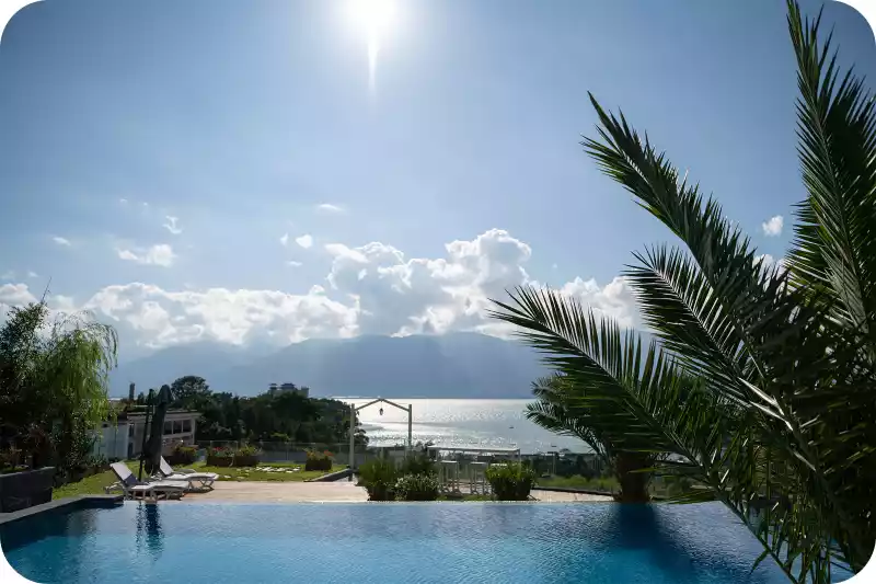 We arrived at Shuanglang Ancient Town around 11:00 AM. A stark contrast to the inclement weather of the previous day, today was a bright, sunny day. The inn we stayed at in Shuanglang this time was called Hua Hao Yue Yuan, situated on a small hillside near the south entrance of Shuanglang. From here, we could overlook Erhai Lake and Shuanglang Ancient Town. So why didn't we choose a room with a sea view right next to Erhai Lake? I'll keep you in suspense for now. The inn has a small courtyard with a swimming pool, and the environment is great.