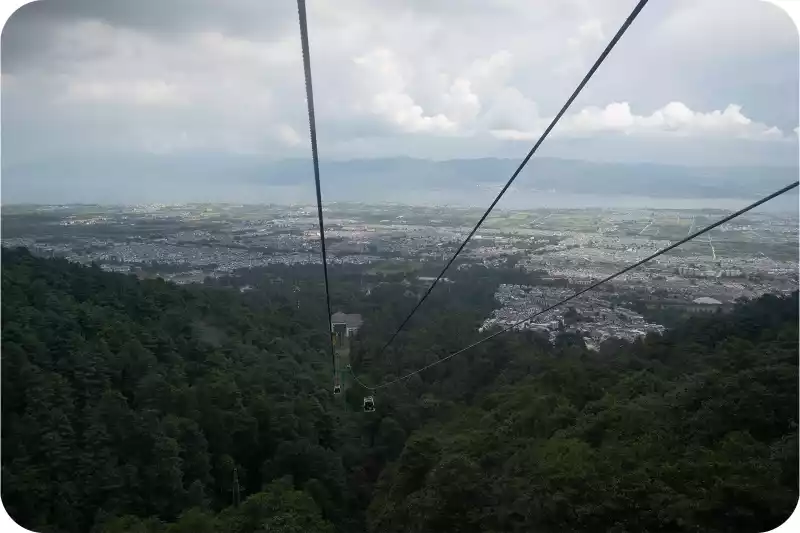 As the cable car continues to rise, the view in front of us becomes wider and wider.