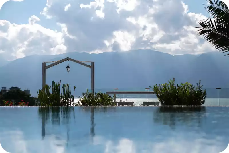 The inn has a small courtyard with a swimming pool, and the environment is great. You can see Erhai Lake in front of the courtyard. This peninsula deep in Erhai Lake is called Yuji Island.