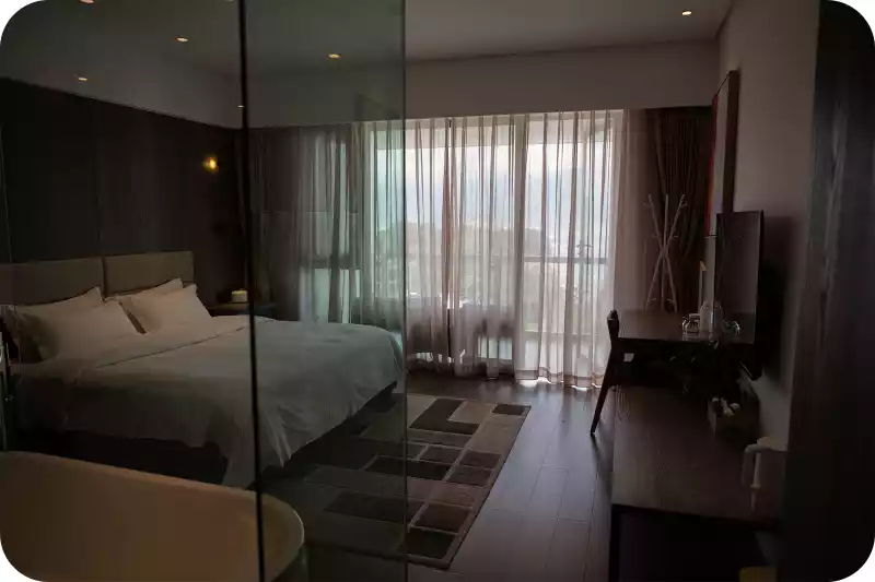 Coming to the guest room, it is also a very photogenic place with a very classy design style.