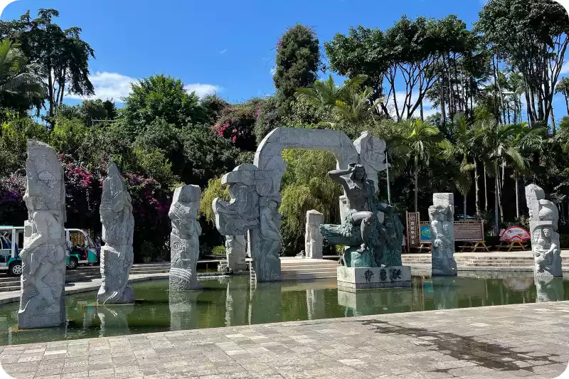 Entering Nanzhao Fengqing Island, the first thing you see is a group of Sha Yimu sculptures.